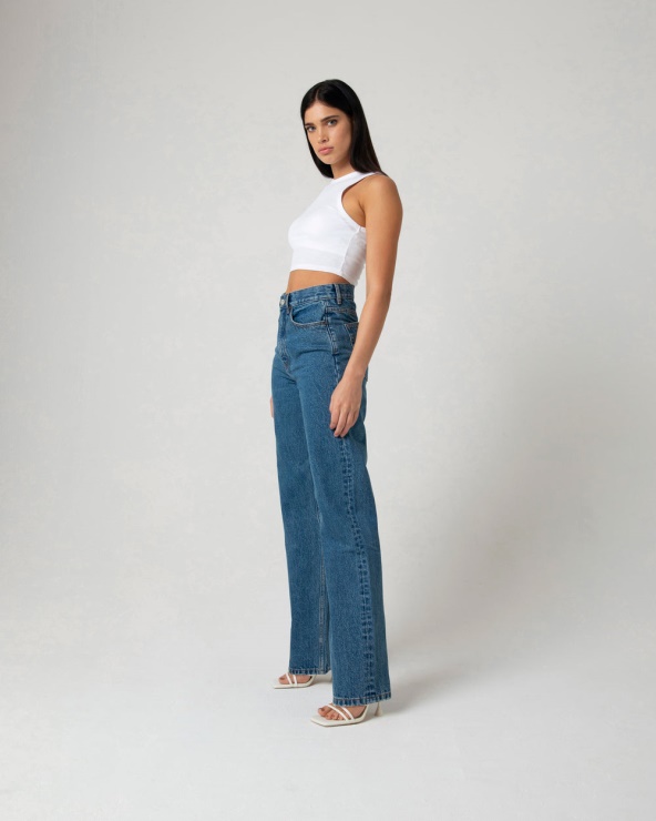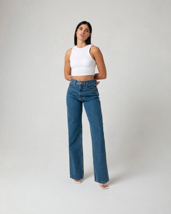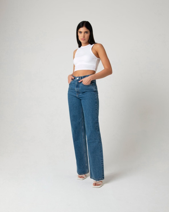 Coupe Classique Des Années 90 Confectionnée à Partir De Denim 100 % Coton De La Meilleure Qualité. Taille Haute, Jambe Large Décontractée Avec Denim Vieilli Au Genou. Lavage Vintage Avec Quincaillerie De Marque Diesel.