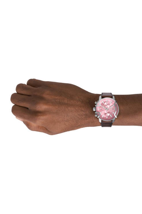 GARANTIELa Montre Griffée De 42 mm De Taille Réduite De Diesel Est Dotée D'un Cadran Rose Soleillé, D'un Mouvement Chronographe Et D'un Bracelet En Cuir Marron Provenant D'une Tannerie Certifiée LWG.