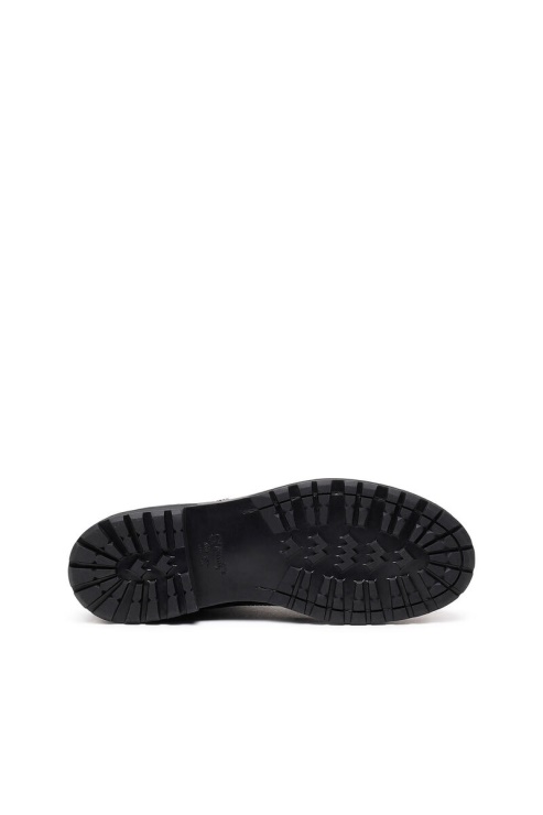 Ces Bottes à Lacets Pour Femmes Présentent Une Silhouette Militaire Mise à Jour, La Tige Est Ajustée Autour Du Dos Avec Un Panneau Côtelé Extensible Pour Un Ajustement Parfait. Elles Sont Réalisées En Cuir Noir Brillant, Dotées D'une Languette À Logo Estampé Et D'une Semelle Épaisse Crantée.