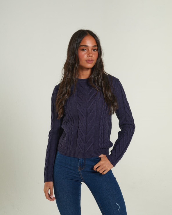 Pull En Maille Torsadée Avec Col, Ourlet Et Poignets Côtelés. Fini Avec Un Badge En Métal Diesel Au-dessus De L'ourlet.