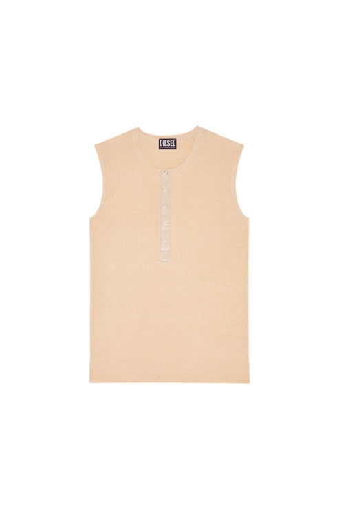 Ce Débardeur Henley Est Un Modèle Près Du Corps, Tricoté En Côtes à L'aide D'une Technique De Placage Pour Un Effet Bicolore Subtil. Issu De La Collection Printemps-été 2022 De Diesel, Il Est Fabriqué À Partir De Coton De Base Fin Et Extra Long Et Possède Une Patte Au Toucher Suédé Fermée Par Des Boutons-pression.