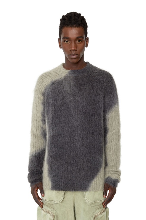 De Coupe Ample, Ce Pull Pour Homme Présente Des Stries De Couleur Plus Claire Sur Les Manches Et Les Côtés Grâce Au Processus De Double Teinture. Il Est Tricoté À Partir D'un Mélange De Mohair Côtelé Et Brossé Pour Rehausser Son Toucher Doux Et Pelucheux.
