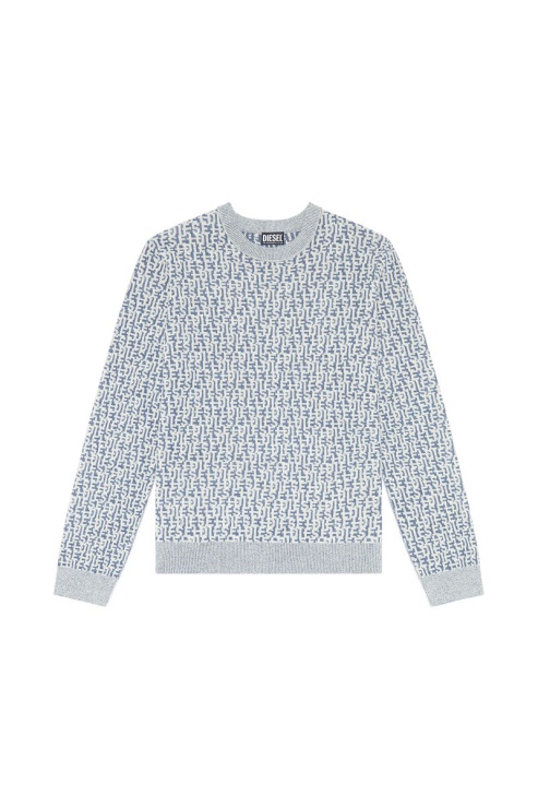 Avec Sa Teinte Bleu Marine Et Ses Points De Chaînette, Ce Pull Pour Homme À La Coupe Regular Fait Un Clin D'œil Au Denim. Le Motif Monogramme Diesel Intégral Est Tricoté En Jacquard à L'aide De Fil Boucl, Donnant à La Base En Laine Mélangée Peignée Une Finition Tactile Tridimensionnelle.