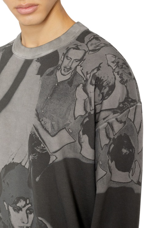Sweat-shirt En Jersey à Col Rond Et Coupe Décontractée. Ce Pull De La Collection Runway Show Automne/Hiver 2022 Présente Un Imprimé Intégral D'une Scène De Danse Capturée Lors D'un événement Diesel Réel, Et Surteint Dans Une Teinte Tonale Pour Un Effet Délavé Et Irrégulier.