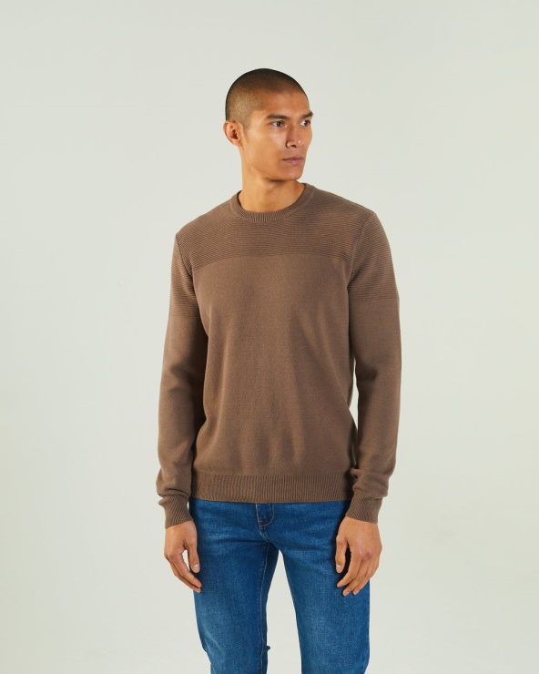 Pull Ras Du Cou En Coton Super Doux Avec Empiècements En Maille Contrastante, Poignets Et Ourlet Côtelés, étiquette De Marque Diesel.