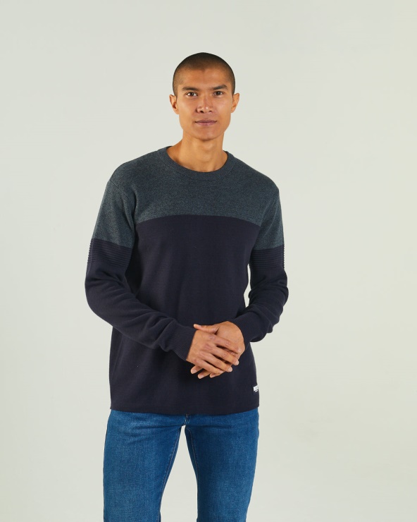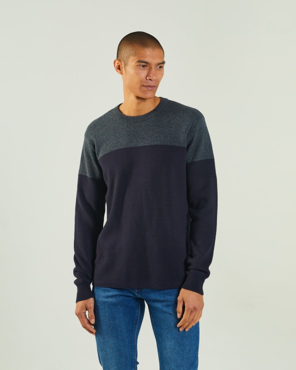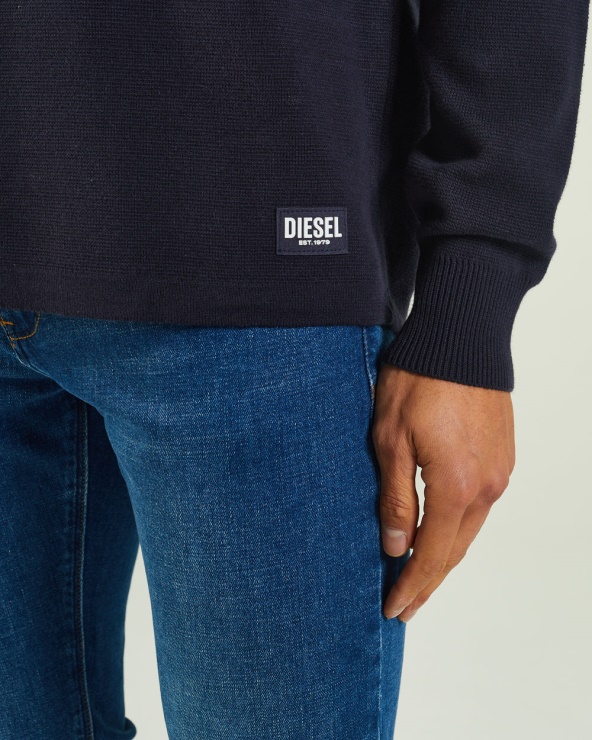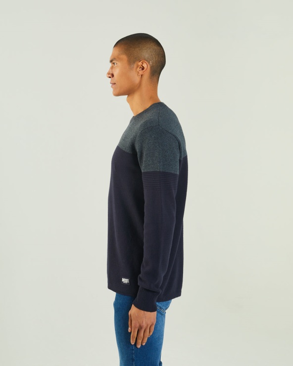 Pull Ras Du Cou En Coton Super Doux Avec Empiècements Contrastants, Poignets Et Ourlet Côtelés, écusson Diesel. Le Mannequin Porte Du M. Il Est Recommandé De Garder Votre Taille Habituelle. 100% Coton