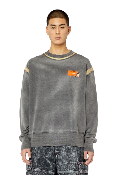 Ce Sweat-shirt Ample En Jersey De Coton Pour Homme Est Revisité Avec Des Empiècements Imprimés à L'encolure, Aux épaules Et à L'intérieur Des Manches. Fini Avec Un Traitement Délavé Pour Un Look Usé, Il Est Marqué D'un Patch Jacquard Diesel « K4055 » Sur La Poitrine.