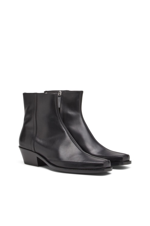 Conçues Avec Un Bout Carré Classique, Ces Bottines Pour Hommes Sont Confectionnées En Cuir Noir Et Montées Sur De Gros Talons Cubains.