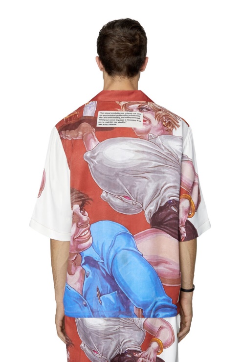 En Partenariat Avec La Tom Of Finland Foundation (ToFF), Cette Chemise à Manches Courtes Est Entièrement Imprimée D'œuvres Sélectionnées Avec La Fondation. Il Est Confectionné En Viscose Et Doté D'un Col Camp Profond Et D'une Fermeture À 4 Boutons. Fini Avec La Citation Des Différents Artistes Et Le Patch Distinctif De La Capsule Au Dos.