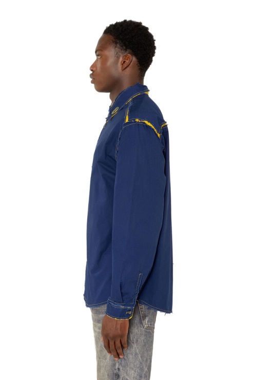 Un Style Délavé, Cette Chemise Pour Hommes Est Coupée Pour Une Coupe Régulière à Partir De Deux Couches Contrastées De Popeline De Coton Biologique. La Construction En Tissu Double Et La Touche De Couleur Sont Révélées Par L'effilochage Le Long Des Bords Et Des Coutures. Fini Avec Un Logo Cousu Sur Le Col.