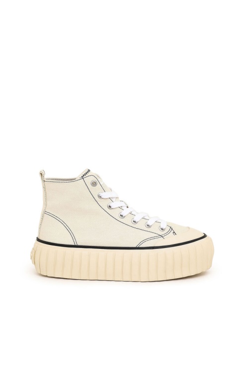 Panier En Toile Denim Teintée Avec Coutures Apparentes. Ce Modèle Vulcanisé Haut De Gamme Est Mis à Jour Avec Une Semelle Plate-forme Striée Et Un Embout En Caoutchouc. Marqué Avec Lettrage Diesel Sur La Languette Et Un Logo D Sur Le Talon.