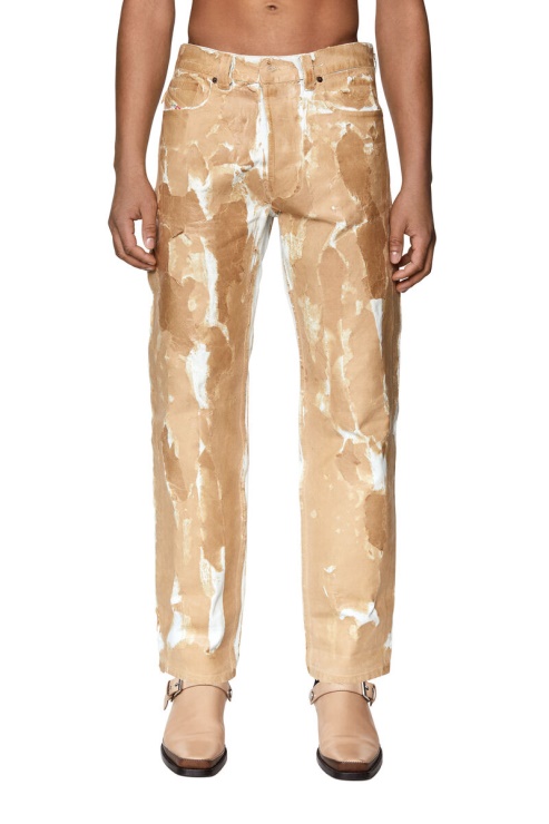 Style Ample Avec Une Taille Régulière Et Une Jambe Droite. La Silhouette Fait Un Clin D'œil à La Culture Street Et Hip-hop Et Présente Une étiquette Distinctive Et Une Braguette à Boutons. Le Traitement Peel-off Unique S'inspire Du Denim Utilisé Des Archives Diesel, Réinterprété Avec Une Touche Innovante. Le Traitement Peel-off Unique S'inspire Du Denim Utilisé Des Archives Diesel, Fini Avec Un Revêtement De Couleur Et Appliqué Sur Un Denim Fixe.