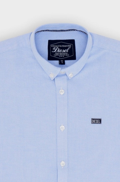 Chemise D'été à Manches Courtes En Coton Oxford Diesel Pour Garçon. Col Boutonné Avec Badges Logo Sur La Poitrine Et L'ourlet
