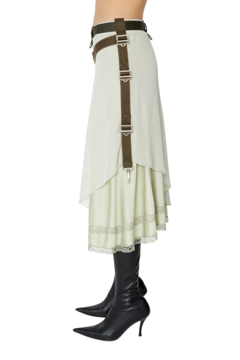 Cette Jupe Portefeuille Associe Une épaisseur De Mousseline à Plusieurs épaisseurs De Jersey De Viscose, Bordées De Finitions En Dentelle. Sa Silhouette Midi Peut Être Ajustée à L'aide De Sangles à Ruban Et De Mousquetons.