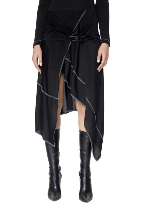 Cette Jupe Asymétrique De Coupe Classique Est Confectionnée En Jersey De Coton Et Viscose Plaqué Et Présente Des Coutures Extérieures Contrastées. Les Détails Drapés Sur Les Hanches Créent Du Volume, Surmontés D'une Plaque D Laquée Ton Sur Ton.