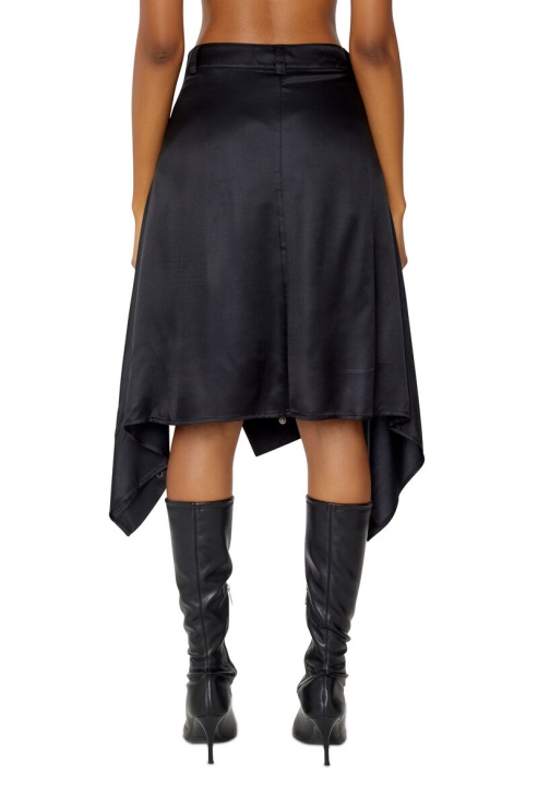 Cette Jupe Entièrement Boutonnée Est Confectionnée En Satin De Viscose Et De Soie. Un Faux Détail De Chemise Avec Les Bras Attachés Sur Le Devant Met à Jour Sa Silhouette De Coupe Régulière, Marquée D'une Plaque Ovale D En Métal Sur L'ourlet.