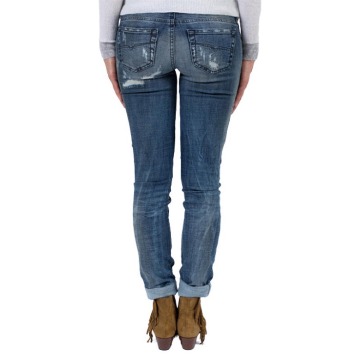 Jean Skinny Bleu Vieilli "Gruppe " De Diesel. Taille Basse. Fermetures Zippées Et Boutonnées.