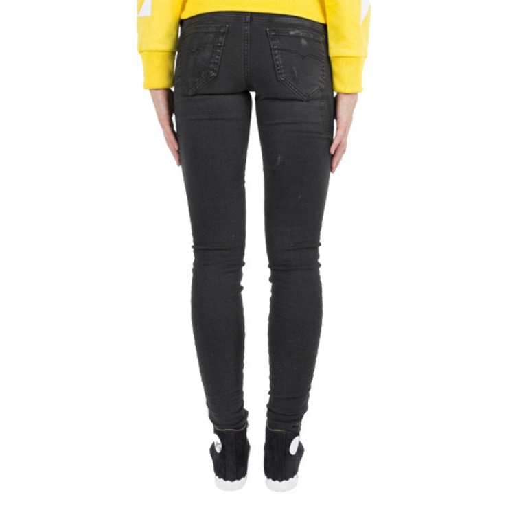 Jean Skinny Noir Effet Vieilli « Skinzee-Low » De Diesel. Taille Basse. Fermetures Zippées Et Boutonnées. Légèrement Ciré.