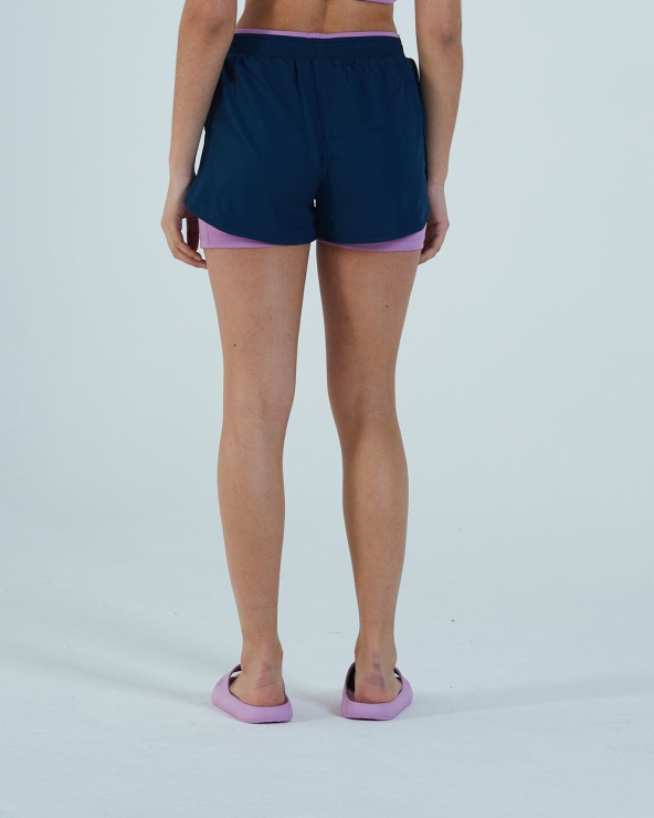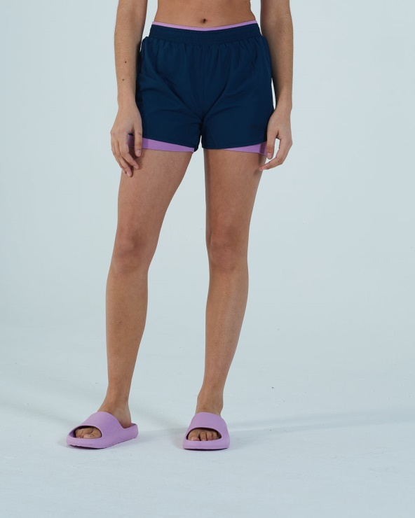 Short En Polyester Léger Avec Short Intérieur De Couleur Contrastée. Le Court Intérieur Comporte Une Poche Dissimulée Sur La Jambe. Taille élastique Avec Cordon De Serrage Intérieur. Illustration En Caoutchouc De Silicone.