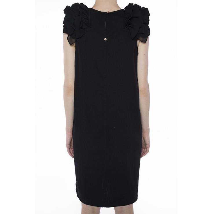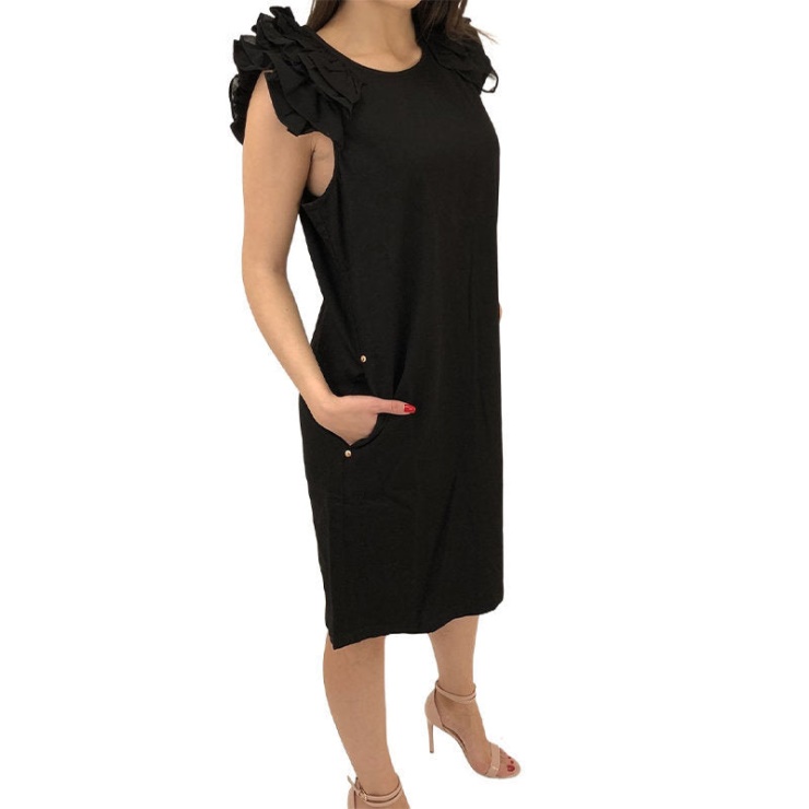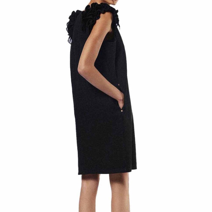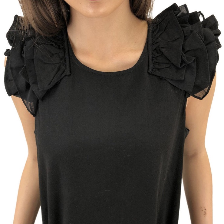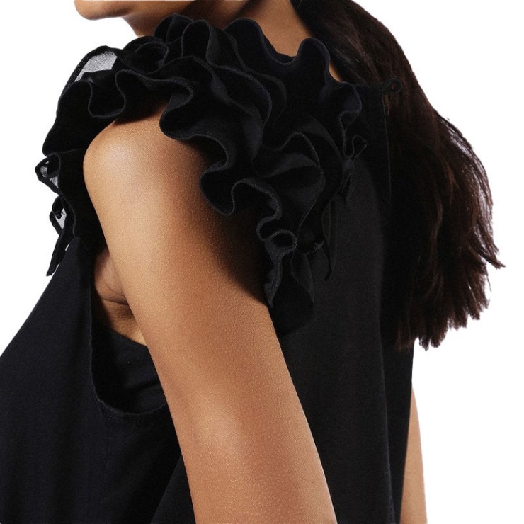La Silhouette Simple Et Décontractée Est Détaillée Avec Des Volants Semi-transparents Sur Les épaules Pour Un Sur- Look Tendance Et Féminin