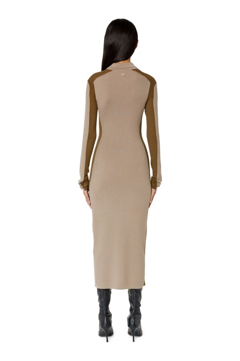 Confectionnée En Laine Côtelée, Cette Robe Midi Est Dotée D'une Encolure Polo Zippée Et De Poignets Effleurant Les Jointures. Les Panneaux Contrastés Améliorent La Coupe épurée Et Ajoutent Une Transparence Subtile Aux épaules Et Aux Manches.