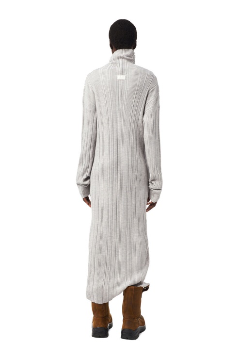 Confectionnée En Laine Mercerisée, Cette Robe Est Tricotée En Côtes Selon Une Technique De Placage À Partir De Fils Plus Clairs Sur Le Dessus Et Plus Foncés Sur Le Dessous. Il A Un Col Roulé Entièrement Façonné Et Des Manches Longues. Écusson Logo Emoji Jacquard Dans Le Dos