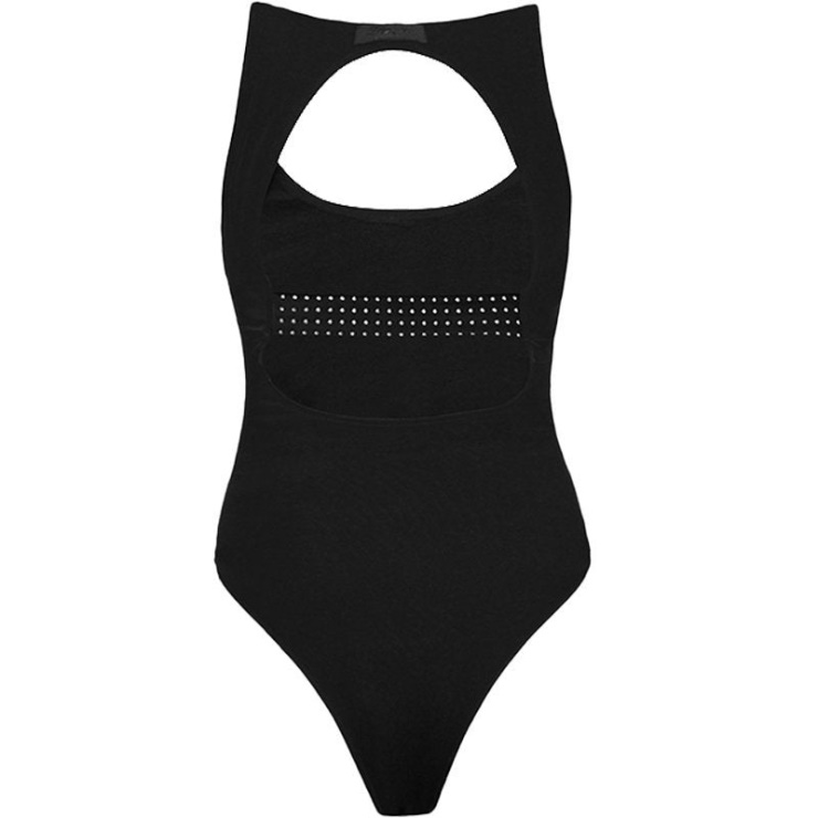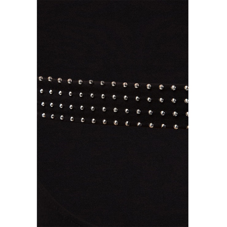 La Pièce à Enfiler Présente Un Dos Ouvert, Orné D'une Bande De Clous Métalliques Scintillants