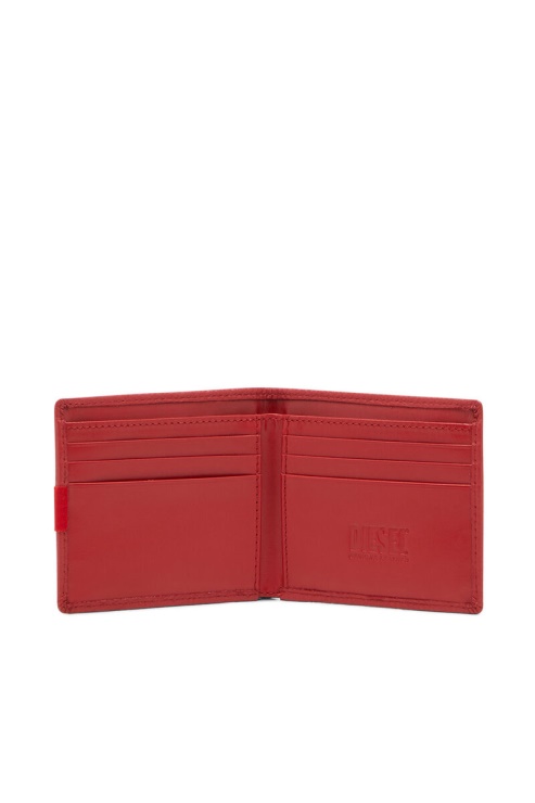 Ce Portefeuille à Deux Volets Pour Hommes Présente Un Design Mince Qui Peut Contenir De Nombreuses Cartes, Notes Et Reçus. Il Est Réalisé En Cuir Grainé Et Agrémenté D'une étiquette Logo Diesel Rouge Sur Le Bord.