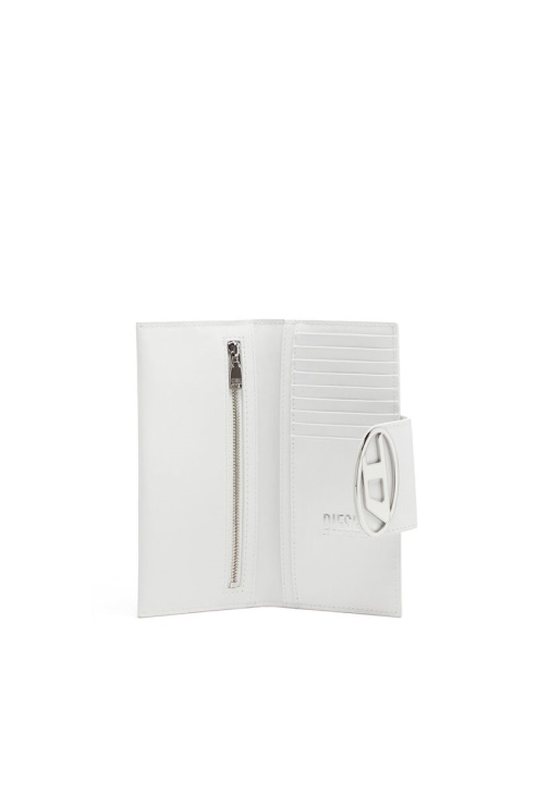 Ce Portefeuille Pour Femme Est Confectionné En Cuir Nappa Souple Dans Une Silhouette Continentale Classique. Une Plaque Logo Audacieuse En Métal émaillé Orne La Fermeture à Patte.