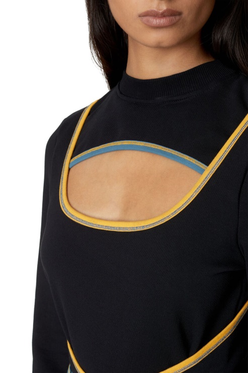Sweat Femme En Jersey De Coton Loopback. Conçu Dans Une Silhouette Ajustée À Effet Superposé, Il Présente Une Découpe Généreuse Sur La Poitrine Et Des Liens Qui S'enroulent Autour De La Taille. Des Bordures Surjetées Contrastées Mettent En Valeur La Construction. Finition Avec Broderie Logo D Ovale.