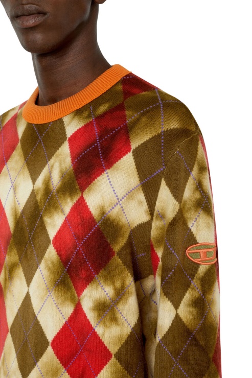 Fabriqué Presque Entièrement À Partir De Laine, Ce Pull Pour Homme Présente Un Motif À Losanges Tricoté En Intarsia Renforcé Par Un Effet Tie-dye. Il Présente Une Coupe Classique, Un Col Ras Du Cou Uni Et Le Logo « D Ovale » Ornant La Manche Gauche.