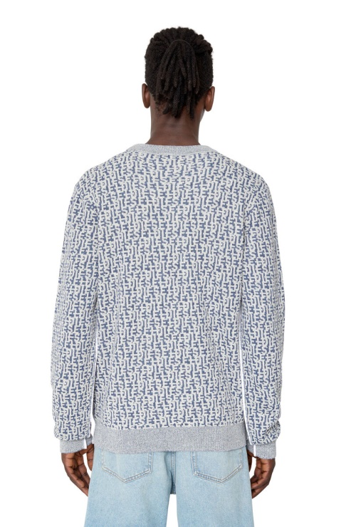 Avec Sa Teinte Bleu Marine Et Ses Points De Chaînette, Ce Pull Pour Homme À La Coupe Regular Fait Un Clin D'œil Au Denim. Le Motif Monogramme Diesel Intégral Est Tricoté En Jacquard à L'aide De Fil Boucl, Donnant à La Base En Laine Mélangée Peignée Une Finition Tactile Tridimensionnelle.