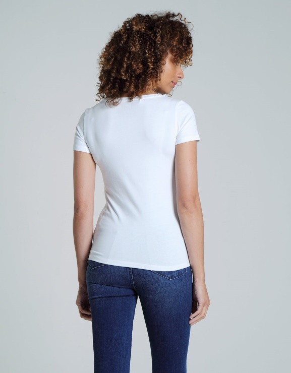 T-shirt Basique à Col En V En Coton Mélangé Avec étiquette Diesel Sur L'ourlet. Le Mannequin Porte Du XS. Il Est Recommandé De S'en Tenir à Sa Taille Habituelle. 95% Coton 5% élasthanne.