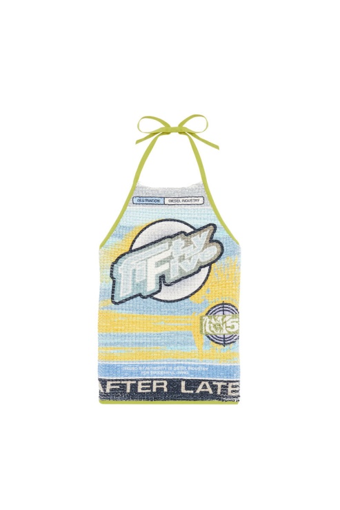 Issu De La Collection Runway Show FW22, Ce Haut Dos Nu Est Confectionné En Tissu Chenille Extensible Au Toucher Velouté. Smockée Pour Un Effet Bouffant Avant D'être Imprimée De Graphismes All-over, Elle Est Doublée De Résille.