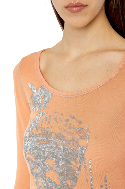 T-shirt Femme À Manches Longues En Lyocell Stretch, Doté D'une Coupe Près Du Corps Et D'un Col Large. La Poitrine, Le Dos Et Les Manches Sont Ornés D'imprimés Métallisés Caoutchoutés.