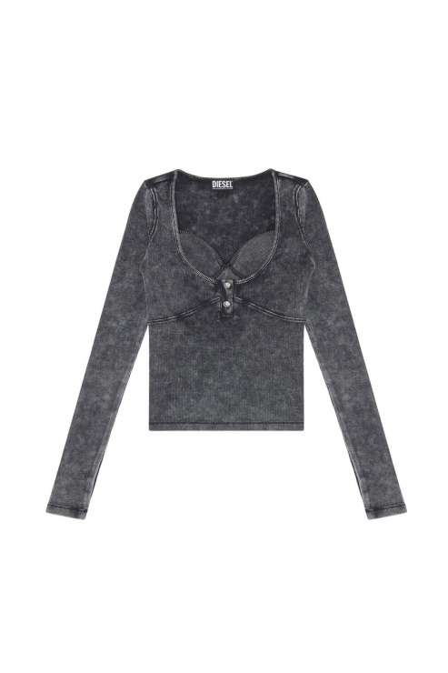 Top Femme à Manches Longues En Jersey De Coton Stretch, Lavé Et Teint En Pièce Pour Un Look Usé. Son Profil Mince Présente Une Ouverture À Deux Boutons Et Un Soutien-gorge En Dentelle Dos Nu Intégré. Logo « D » Ovale Ton Sur Ton Brodé Au Dos.