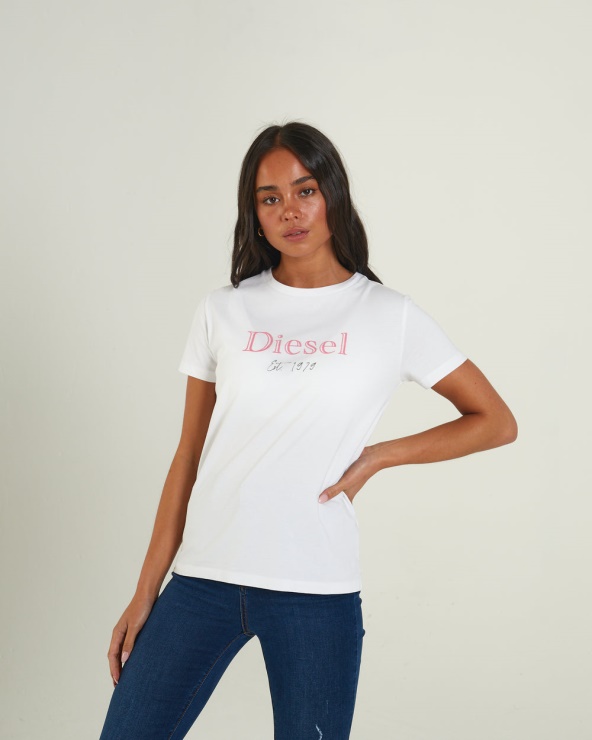 T-shirt En Coton Non Extensible. Il Y A Un Logo Diesel Floqué Et Imprimé Sur La Poitrine. Le Mannequin Porte Une Taille XS. Ce Vêtement Taille Normalement. 100% Coton
