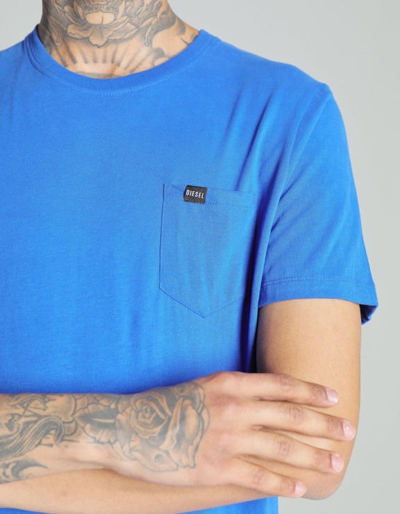T-shirt Basique Avec Poche Sur La Poitrine Et étiquette Tissée Diesel Sur La Poche Et L'ourlet.Le Mannequin Porte Du M. Il Est Recommandé De S'en Tenir à Sa Taille Habituelle.100 % Coton.