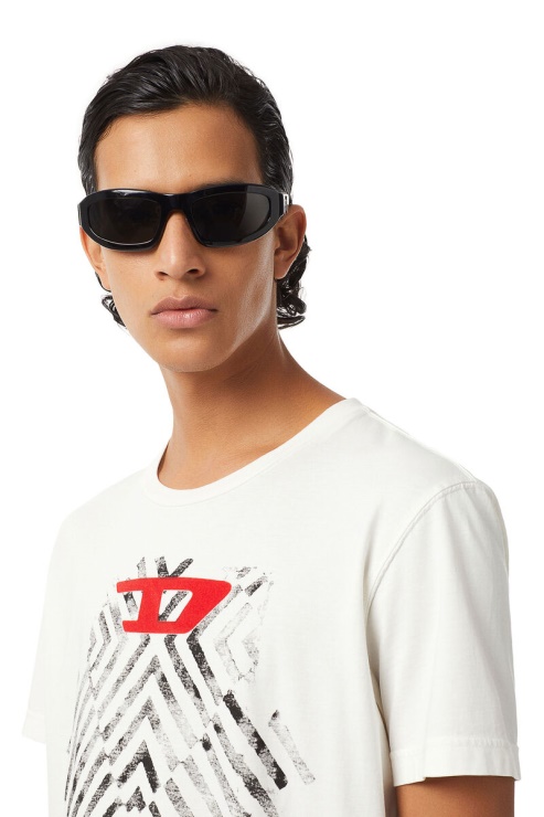 T-shirt Coupe Slim En 100% Coton. Le Devant Graphique Présente Un Effet Optique, Enrichi D'un Logo 'D' Floqué De Couleur Contrastante.