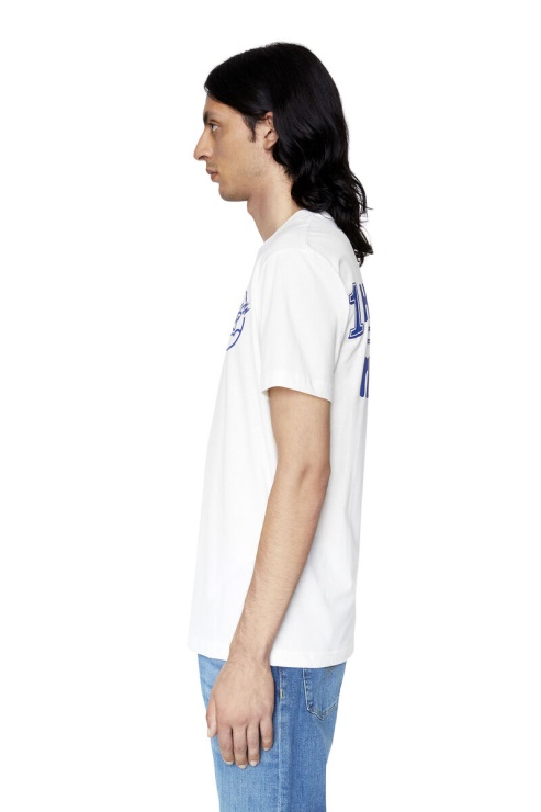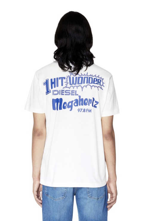 T-shirt Homme Confectionné En Coton Biologique Et Polyester Recyclé. De Coupe Ajustée, Ce T-shirt Présente Un Petit Logo Imprimé Sur La Poitrine Et Un Graphisme Audacieux Avec Le Lettrage « Diesel Megahertz » Dans Le Dos.