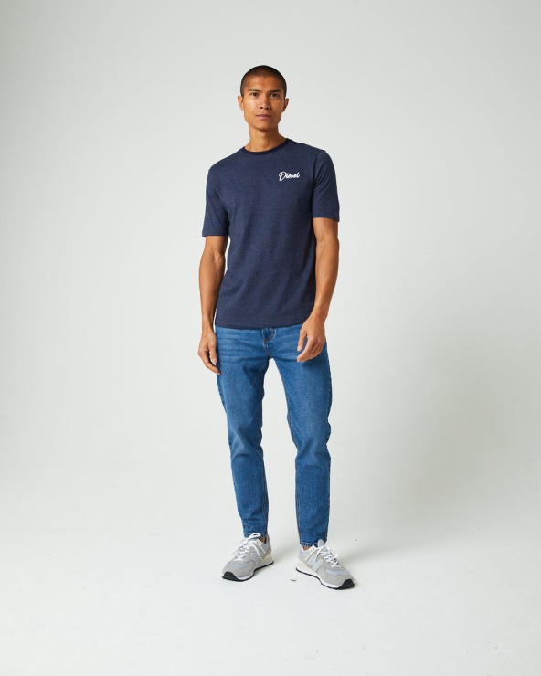 T-shirt Homme En Coton Imprimé Avec écusson Diesel En Caoutchouc Sur La Poitrine Et Petite étiquette Drapeau Près De L'ourlet. Le Mannequin Porte Du M. Il Est Recommandé De Garder Votre Taille Habituelle. 65% Coton 35% Polyester