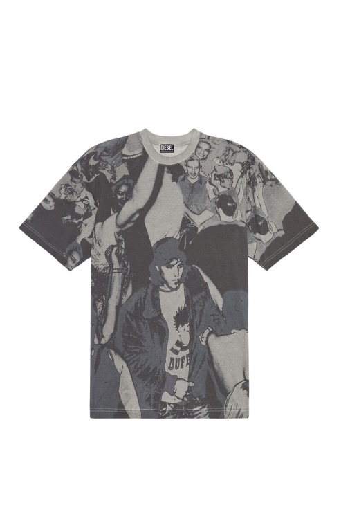 Doté D'une Coupe Décontractée, Ce T-shirt Pour Homme Fait Partie De La Collection FW22 Runway Show. Son Imprimé Scène De Danse A été Capturé Lors D'un événement Diesel, Surteint Pour Un Look Irrégulier.