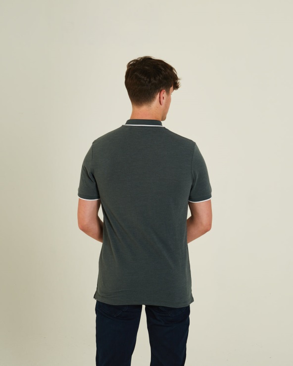 Polo Pour Homme En Coton Pilqué Avec Col En Polyester Et Manches Côtelées. Liseré Contrasté Au Col Et Aux Poignets, Avec Contraste À L'intérieur De La Patte Avant à 3 Boutons. Logo En Caoutchouc En Relief Sur La Poitrine Gauche.
