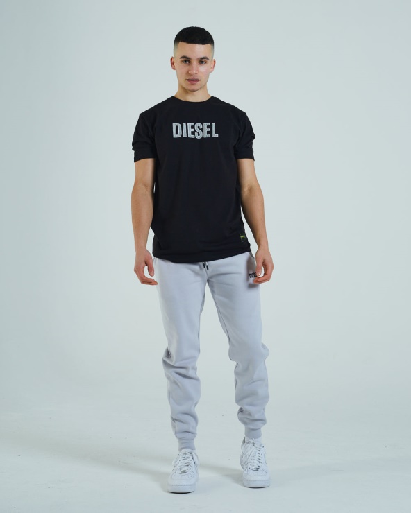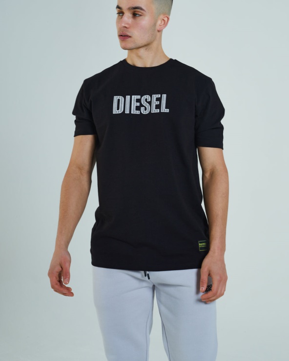 T-shirt En Coton Doux Pour Homme Avec Motif En Caoutchouc Audacieux Sur La Poitrine Et Badge Holographique Distinctif Sur L'ourlet. Logo DIESEL Réfléchissant Sur La Nuque. Le Mannequin Porte Du M. Il Est Recommandé De S'en Tenir à Sa Taille Habituelle. 100 % Coton