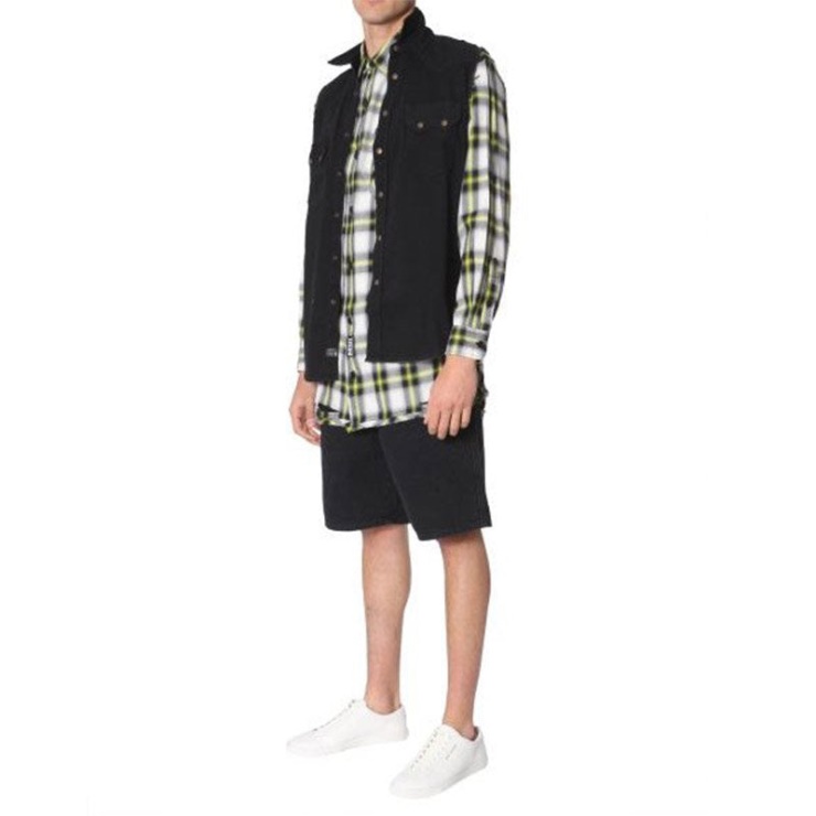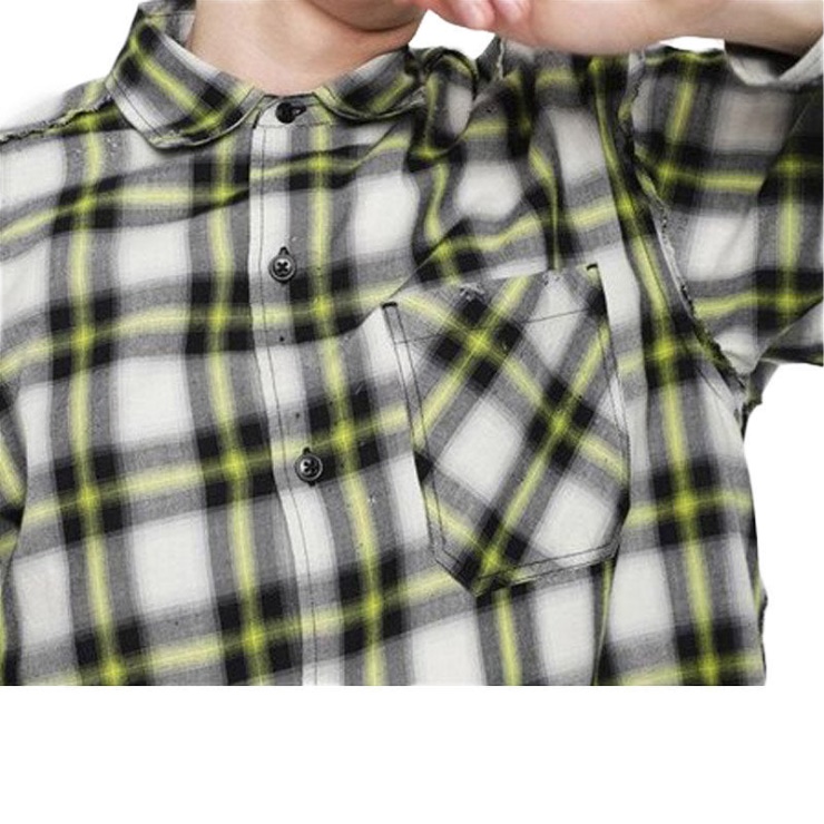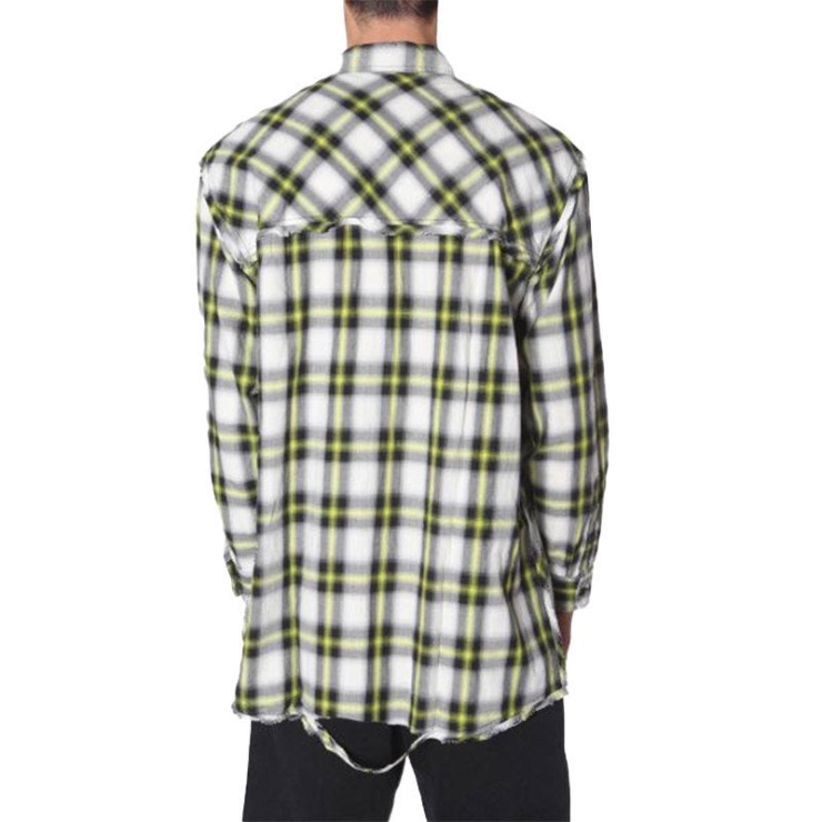 Cette Chemise En Coton Léger Présente Un Motif À Carreaux Teint En Fil, Des Bords Effilochés Et Un Ourlet Déchiré