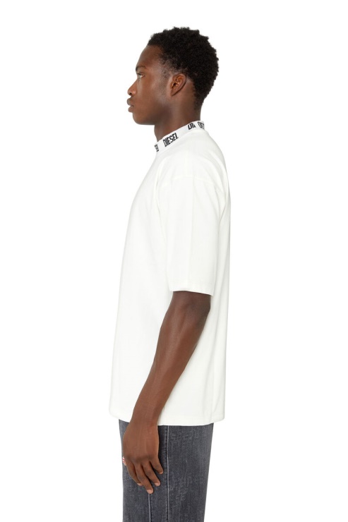 T-shirt Ample Pour Homme En Jersey De Coton épais, Fini Avec Un Traitement Teint En Pièce. Le Faux Col Roulé Est Orné De Logos Diesel En Jacquard Sur Toute La Surface.