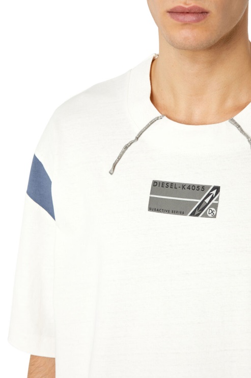 T-shirt Homme En Coton Avec Bandes De Manches Contrastées. Définie Par Sa Coupe Ample, Elle Est Dotée D'un Empiècement En Jacquard Niché Entre Les Coutures Surélevées De L'enveloppe Et D'un Logo Graphique Imprimé à L'ourlet Arrière.