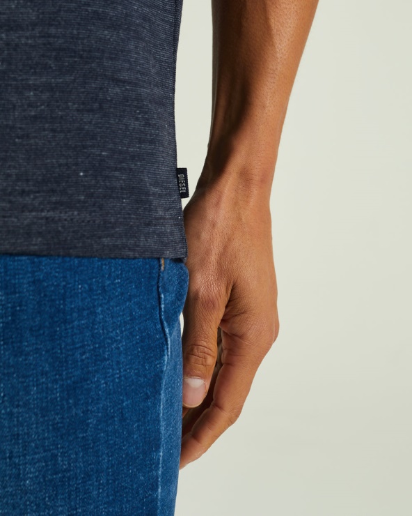 T-shirt à Rayures En Coton Pour Homme Avec Bord-côte Contrasté à L'encolure. Associez Ce T-shirt à Une Paire De Nos Jeans Diesel Pour Un Look Jeanswear Sans Effort. Le Mannequin Porte Du M. Il Est Recommandé De Garder Votre Taille Habituelle.