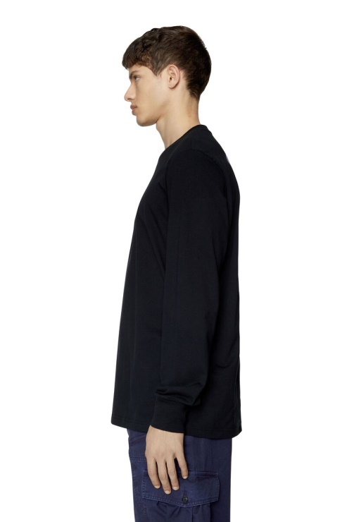 T-shirt Noir à Manches Longues Pour Homme, En Coton Biologique Et Polyester Recyclé. Son Profil De Coupe Régulière Est Orné D'imprimés « Diesel Industry Network » Sur La Poitrine, Le Dos Et La Manche Dans Un Mélange De Finitions Floquées Et Mates.