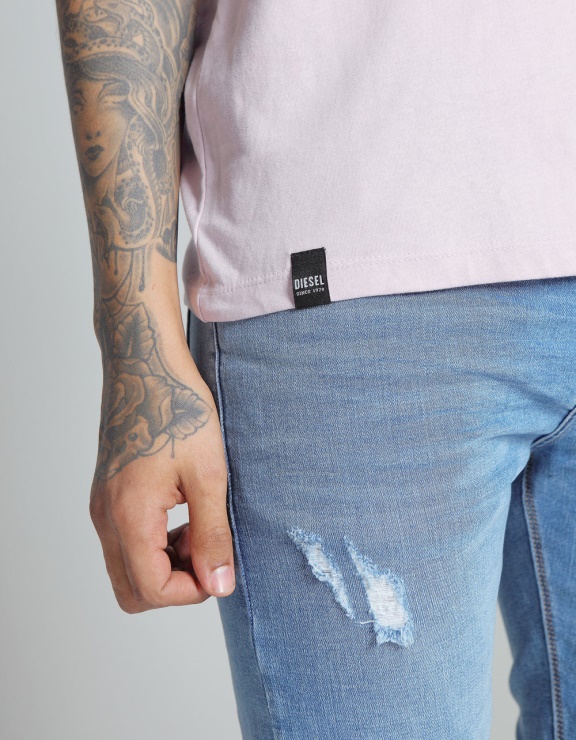 T-shirt Basique à Col En V 100 % Coton Brossé Doux Avec Broderie Diesel Sur La Poitrine Et étiquette Tissée Diesel Sur L'ourlet. Col En V Régulier. Le Mannequin Porte Du M. Il Est Recommandé De S'en Tenir à Sa Taille Habituelle. 100 % Coton.